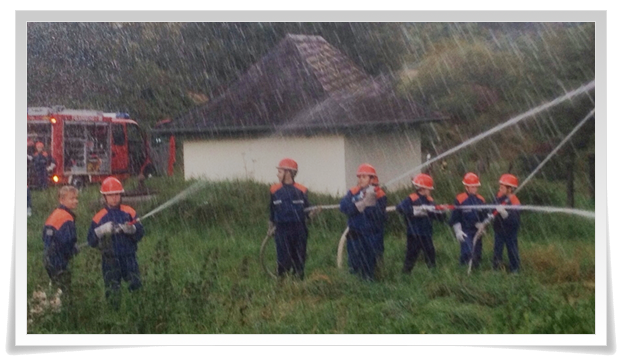 Jeden Freitag treffen sich die Mitglieder der Jugendfeuerwehr Nochern, um gemeinsam die Grundtätigkeiten des Feuerwehrdienstes zu erlernen und zu festigen. Begeistert zeigten sich die Jugendlichen am Freitag, den 19. September 2014, bei einer der vielen Nassübungen.