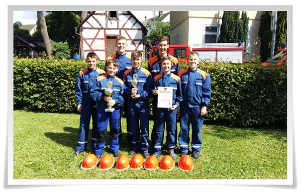 Gemeinsam mit den anderen Jugendfeuerwehren wurde der Brand mittels C-Strahlrohre schnell unter Kontrolle gebracht und gelöscht. Im Anschluss traf man sich nochmals am Dorfgemeinschaftshaus, um Grußworte der Wehrleitung und des Kreisjugendwartes entgegen zu nehmen. Bei der Siegerehrung zahlten sich die Anstrengungen vom Vormittag aus und die JFW Nochern trat mit dem ersten Platz in der Tasche die Heimfahrt an.
