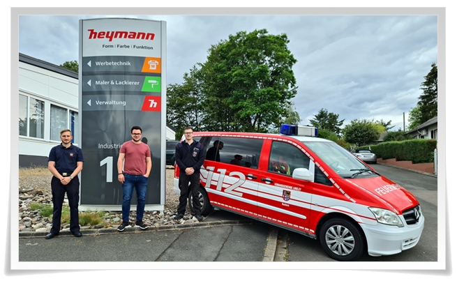 Damit der Mercedes Vito zukünftig als Einsatzfahrzeug erkennbar ist, führte die Firma Heymann in Nastätten eine normgerechte Flächenfolierung im ansprechenden Feuerwehrdesigne durch. Die Firma Heymann beteiligte sich an den Kosten für die Folierungsarbeiten, um die Feuerwehr Nochern als regionale Hilfsorganisation zu unterstützen.