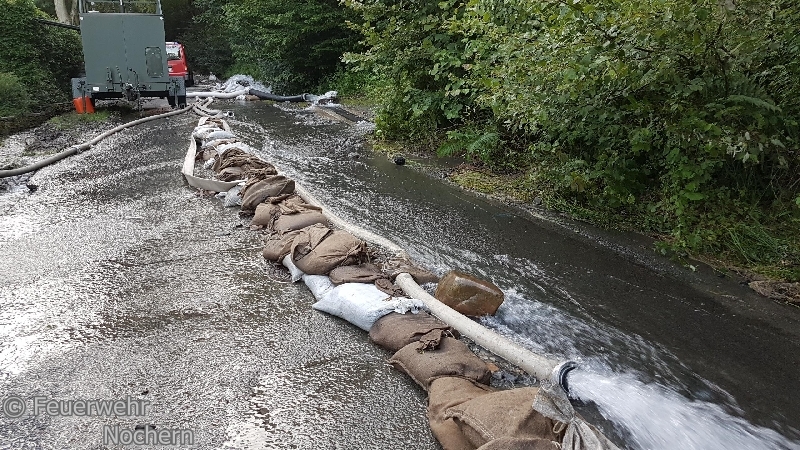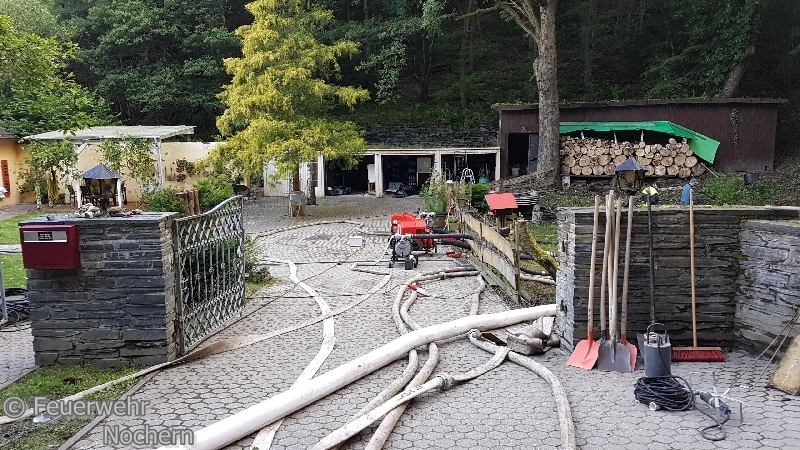 Ein Teil der gebildeten Staffel sorgte für den problemlosen Betrieb von Pumpen und Stromaggregat in der Adolfsstraße, ein anderer Teil baute einige, nicht mehr benötigte Schläuche in der Blüchertsraße zurück.